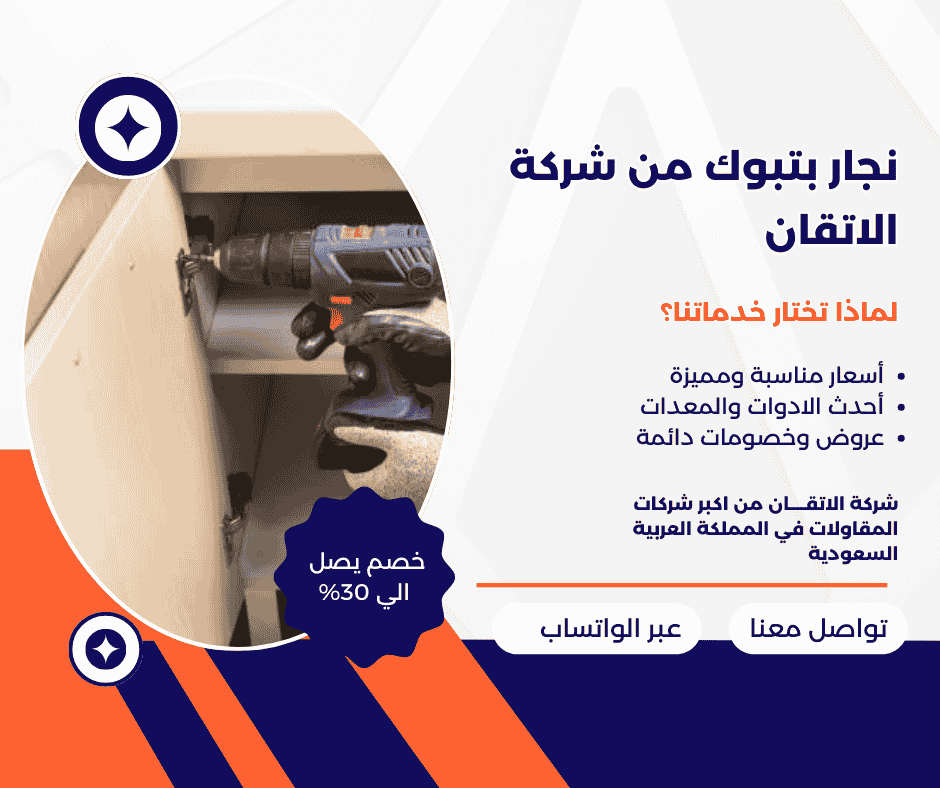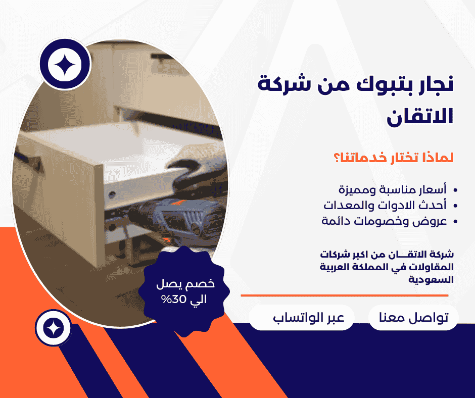 يتميز نجار في تبوك بمعرفة واسعة بأنواع الأخشاب والتشطيبات المختلفة، مما يساعد في اختيار المواد المناسبة التي تجمع بين الجودة والمتانة. كما يمتلك الأدوات والمعدات الحديثة التي تضمن تنفيذ الأعمال بدقة واحترافية. سواء كنت بحاجة إلى إصلاح الأبواب، تركيب الستائر، أو تفصيل أثاث مخصص، فإن النجارين المحترفين في تبوك يلبون احتياجاتك بأفضل الأسعار وأعلى معايير الجودة، مع توفير خدمات الصيانة والتعديل حسب الطلب.