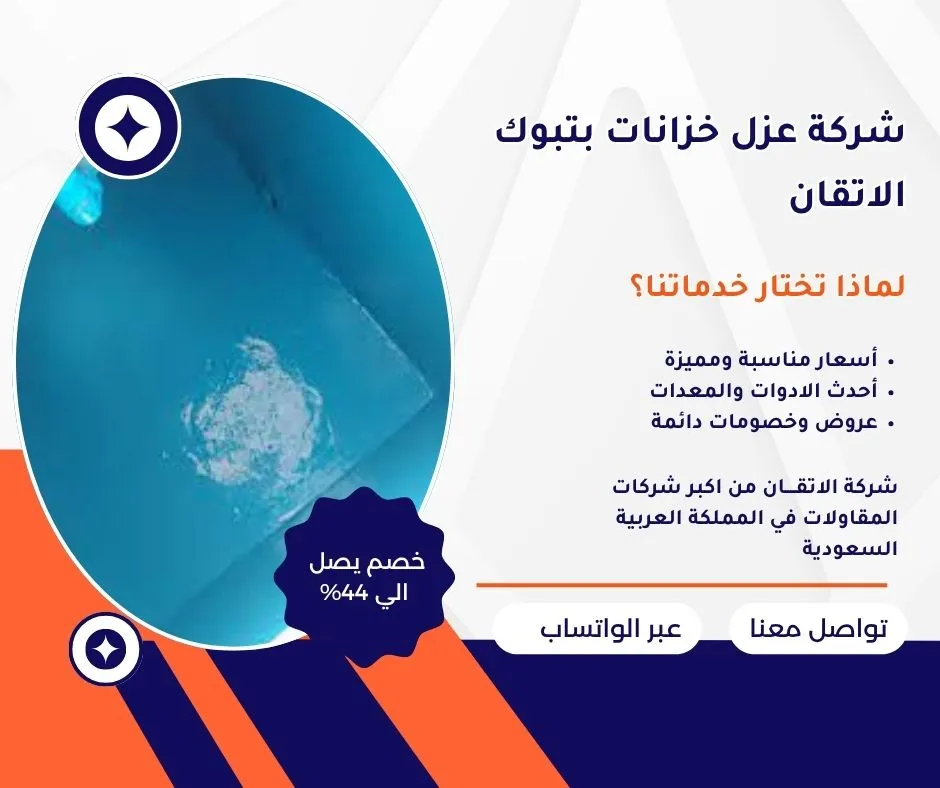 هل تعاني من مشاكل في تسرب المياه أو تلف في خزان منزلك؟ هل تبحث عن حل مضمون وبأقل التكاليف؟ إليك الحل المثالي مع أرخص شركة عزل خزانات بتبوك! نحن نقدم لك خدمات احترافية بعزل مائي وحراري باستخدام أفضل المواد العازلة المعتمدة وبأحدث التقنيات. اجعل خزانك محميًا من أي ضرر، وتمتع بمياه نظيفة وآمنة لعائلتك دون أن تدفع مبالغ طائلة. لا تتردد، وابدأ الآن بخدمة توفر لك راحة البال وضمان طويل المدى بأفضل سعر في تبوك.