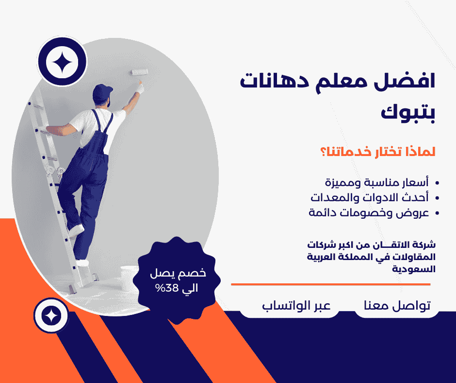 عندما تبحث عن معلم دهانات بتبوك، فأنت بحاجة إلى خبير يمتلك حسًا فنيًا عاليًا وخبرة واسعة في تنفيذ أرقى التصاميم وأحدث تقنيات الدهان. نقدم لك في شركة الاتقان  خدمة احترافية متكاملة، حيث نجمع بين الجودة، الإبداع، والدقة في التنفيذ، لضمان حصولك على نتائج مبهرة تعكس ذوقك الراقي.