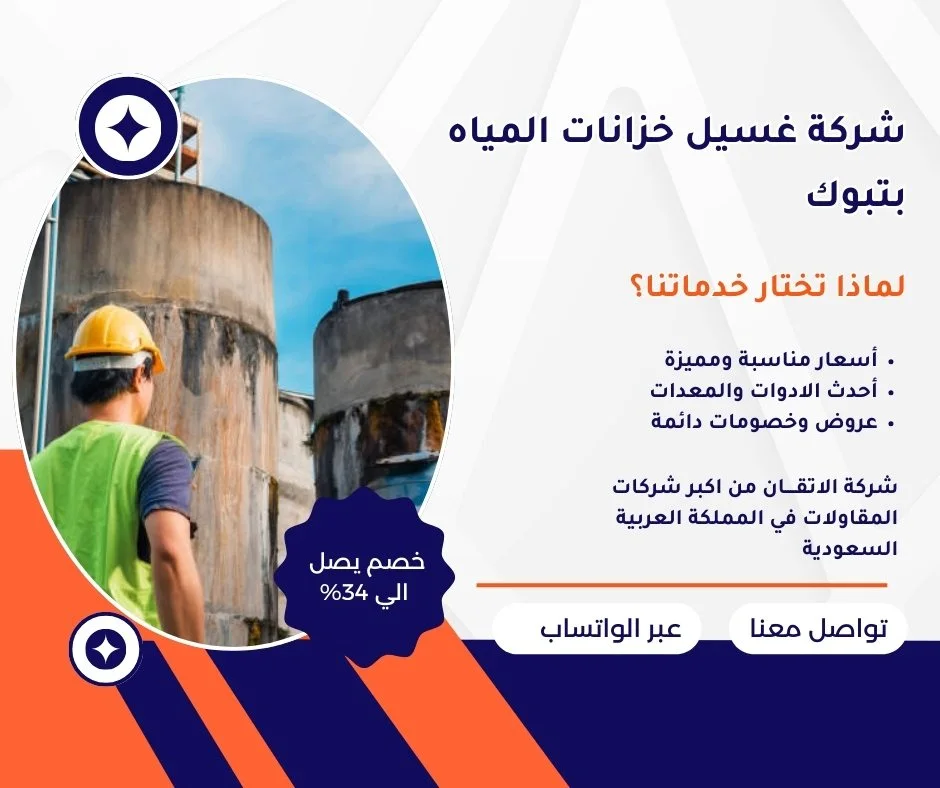 هل تبحث عن شركة تنظيف خزانات بتبوك موثوقة وتقدم نتائج مضمونة بكفاءة واحترافية؟ لا داعي للبحث أكثر، فنحن في خدمتك! نمتلك خبرة واسعة في تنظيف وتعقيم خزانات المياه، ونعتمد على أحدث الأساليب والمعدات لنضمن لك خزانًا نظيفًا وآمنًا تمامًا. سواء كنت تعاني من تراكم الرواسب، أو الطحالب، أو أي شوائب تؤثر على جودة المياه، فنحن هنا لنقدم لك الحلول المثالية. تواصل معنا الآن، واستمتع بخدمة عالية الجودة وتجربة عمل لا تنسى.