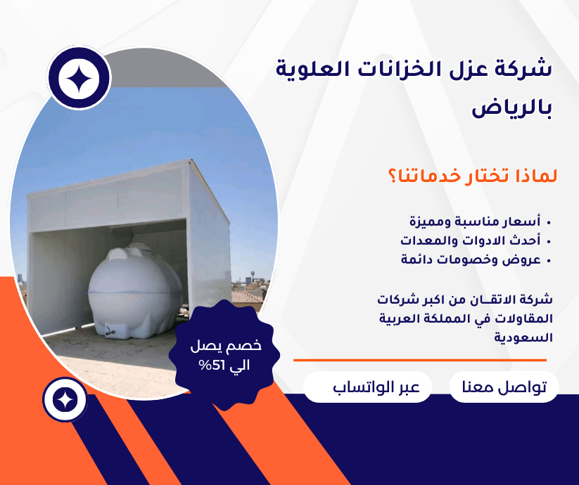 وللحصول على أفضل جودة مع خصم مميز او أفضل اسعار عزل خزانات المياه بالرياض، يمكنك الاعتماد على شركة الاتقان لعزل خزانات المياه بالرياض. التي توفر حلولًا تناسب كل الميزانيات دون التنازل عن الجودة.