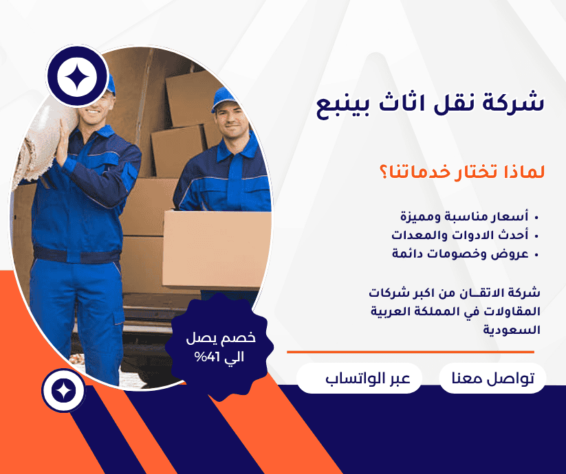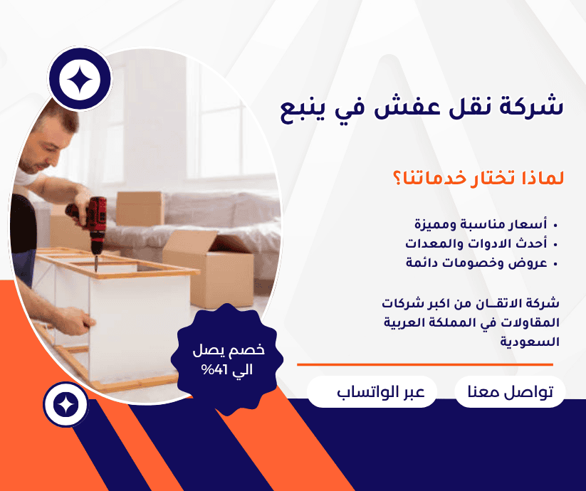 لا داعي للبحث الطويل عن شركة نقل عفش بينبع موثوقة ومتميزة، فقد وصلت إلى الخيار الأمثل. نوفر لك رقم شركة نقل عفش بينبع للتواصل المباشر والحصول على خدمة سريعة ومضمونة. فور الاتصال، يصل إليك فريق متخصص من عمال نقل عفش مدربين على أعلى مستوى في الفك، التغليف، والنقل.